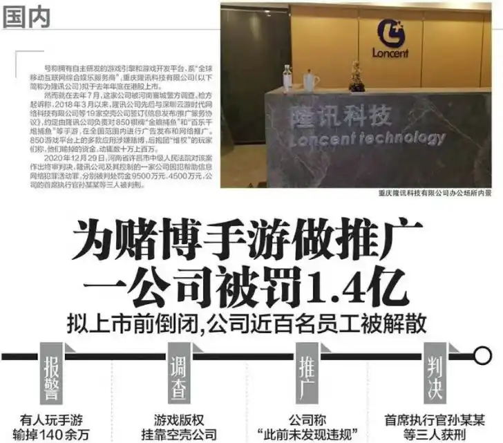 However, in July 2020, a突击行动 by the Xiangcheng County Public Security Bureau in Henan interrupted its path to listing. Police investigation found that Longxun Technology's profit support did not come from normal mobile game联运 but from signing false "Information Release/Promotion Service Agreements" with 19 shell companies to provide comprehensive advertising release and online promotion services for highly gambling-like mobile games like "850 Chess & Card's" "Golden Toad Fishing" and "Hundreds of Happy Cannon Fishing."