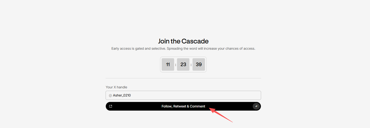 STEP 1. Go to the official website (Link: https://cascade.xyz/join), fill in your personal X account and Google email to complete the early access application (limited-time task).