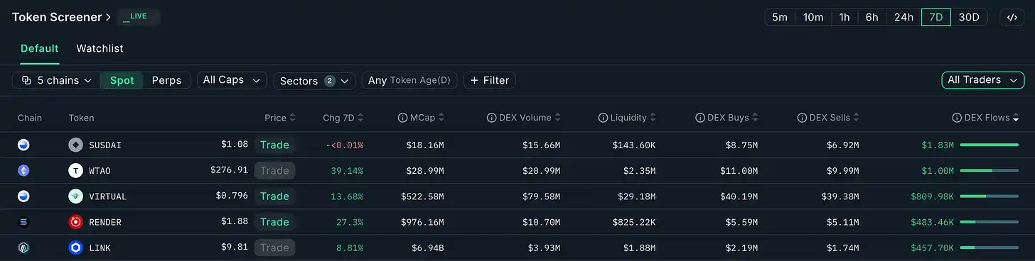 a) Nansen DEX Fund Flows (All Traders, 7-Day)
