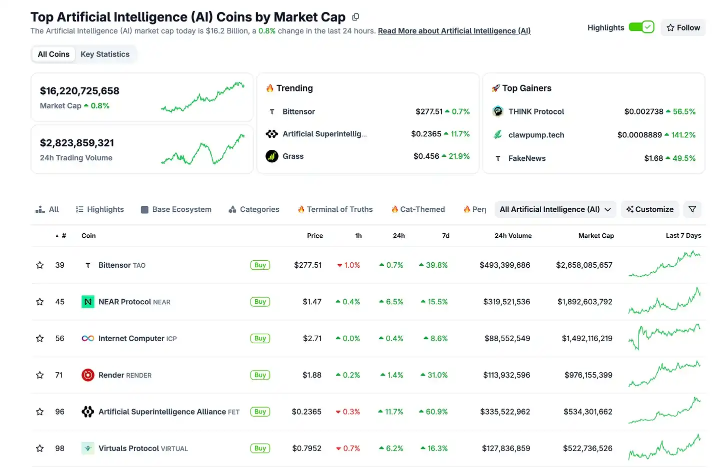 This week, the total DeAI market cap increased by $1.9 billion (+12%), reaching $16.2 billion: