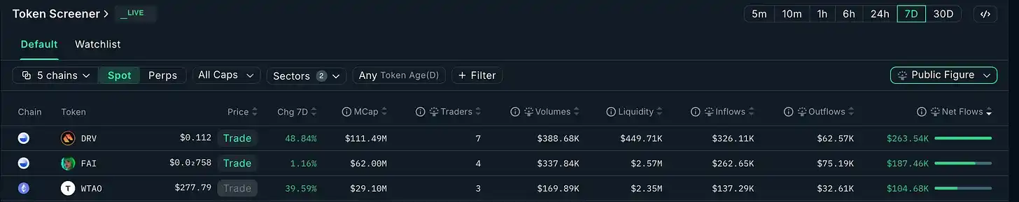 b) Nansen Public Figure Fund Flows (7-Day)