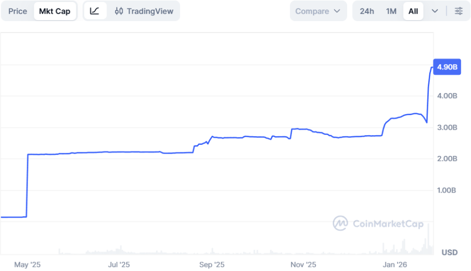 Not long ago, the second son of the U.S. President Trump and WLFI co-founder Eric Trump tweeted that the scale of USD1 had surpassed the stablecoin PYUSD issued by PayPal. In just over half a year, USD1's market capitalization has reached a staggering $4.9 billion, rapidly breaking into the top five of the stablecoin track with astonishing growth speed.