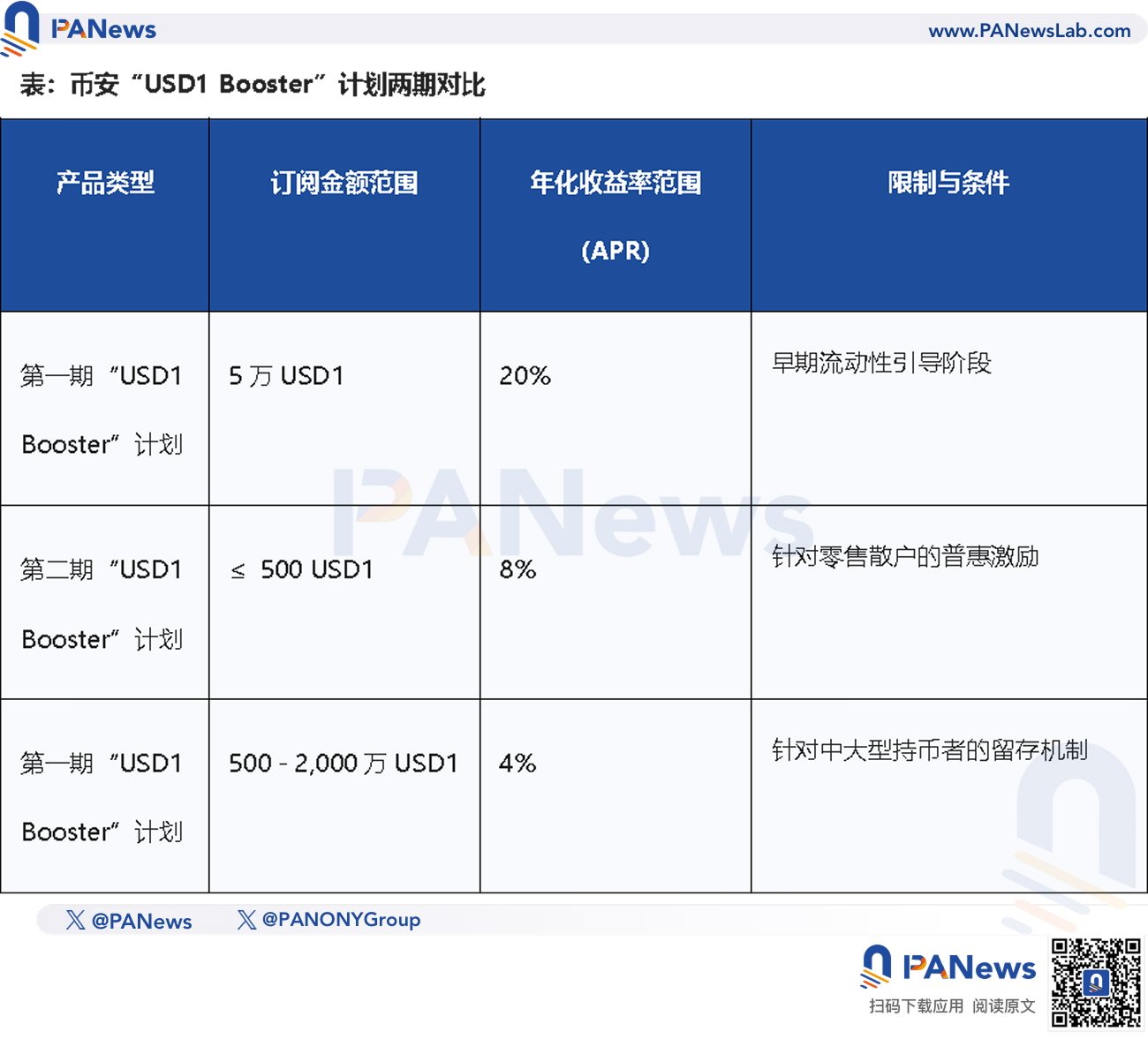 Targeting different user profiles, the "USD1 Booster" plan designed a tiered interest rate structure to尽可能扩大 the user coverage of USD1 and achieve its retention goals.