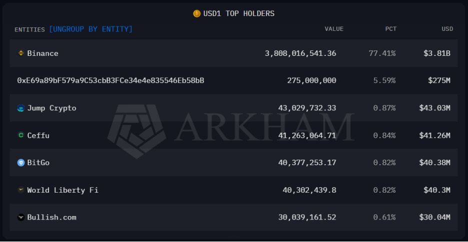 Furthermore, USD1's liquidity is overly concentrated. In the address distribution, nearly 80% of the liquidity is聚集 on the Binance entity alone. This highly centralized liquidity structure raises doubts about USD1's survivability under stress tests. For example, when Binance's subsidies end and USD1 incentives drop to real interest rates, if it cannot provide additional on-chain utility, it could lead to a large-scale capital flight.
