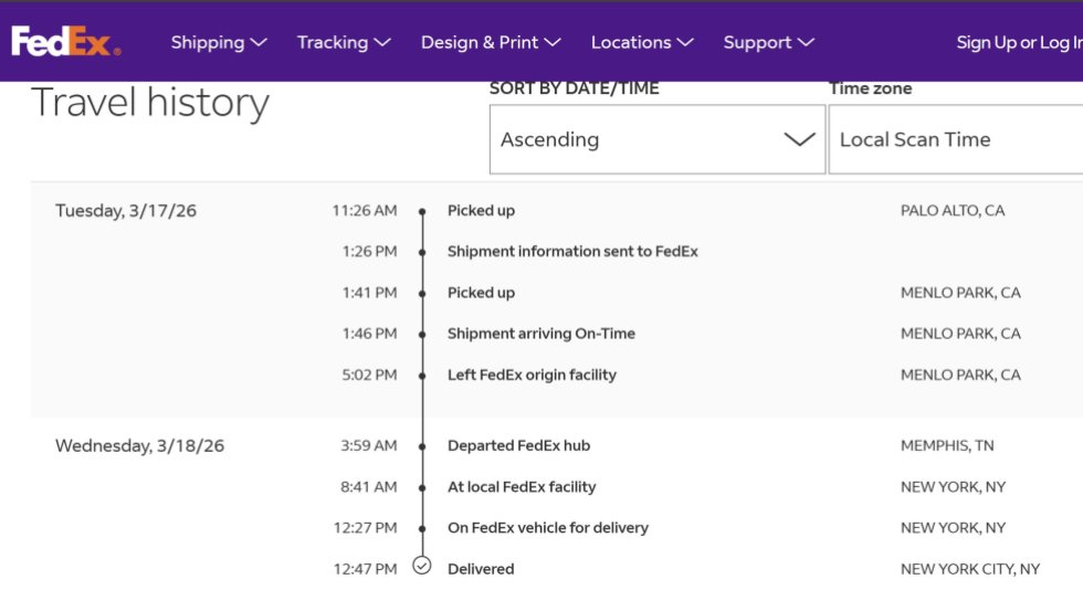 “While the return address indicates it was sent from ‘San Pedro,’ where the facility is located, FedEx tracking shows the package was picked up and shipped from Palo Alto or Menlo Park, California,” the filing highlighted.