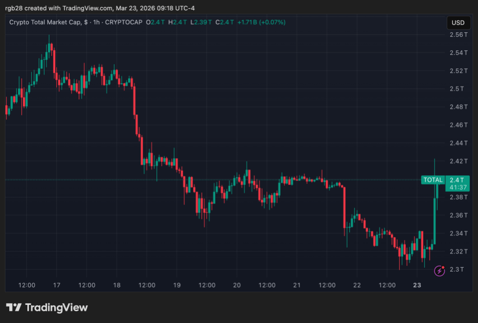 The total crypto market capitalization is at $2.4 trillion in the one-week chart. Source: TOTAL on TradingView
