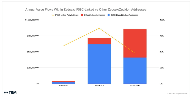 TRM Labs, which tracks cryptocurrency flows, reported that Zedxion Exchange and a related platform called Zedcex moved roughly $1 billion tied to Iran’s Islamic Revolutionary Guard Corps (IRGC).