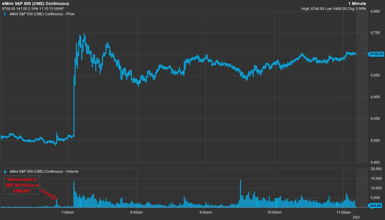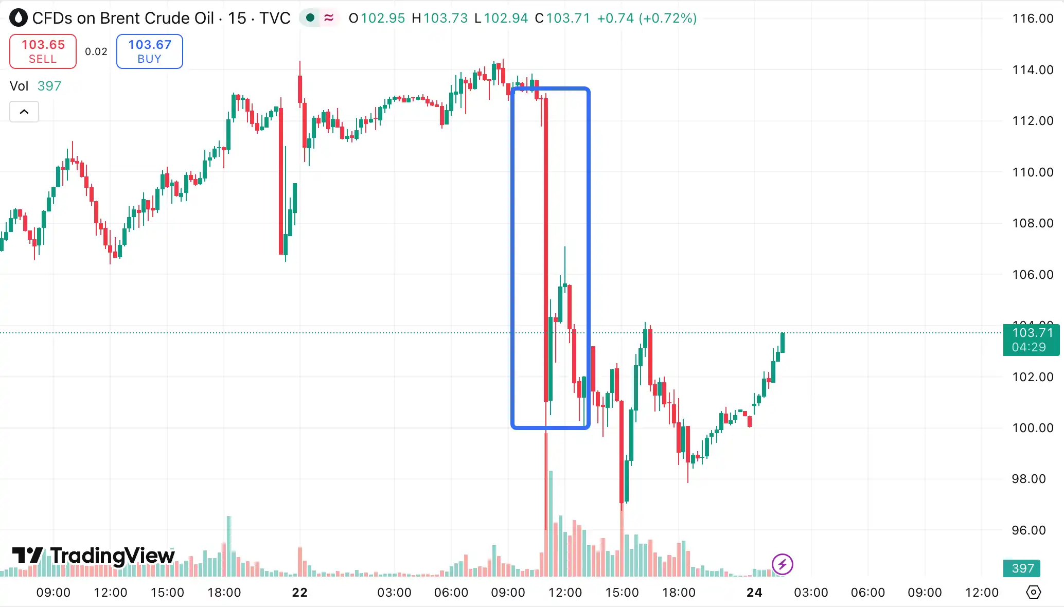 Within minutes, Dow Jones futures surged over 1000 points, and S&P 500 futures rose 2.7%. Brent crude plummeted from $113 per barrel straight down to $98, a drop of over 13%.