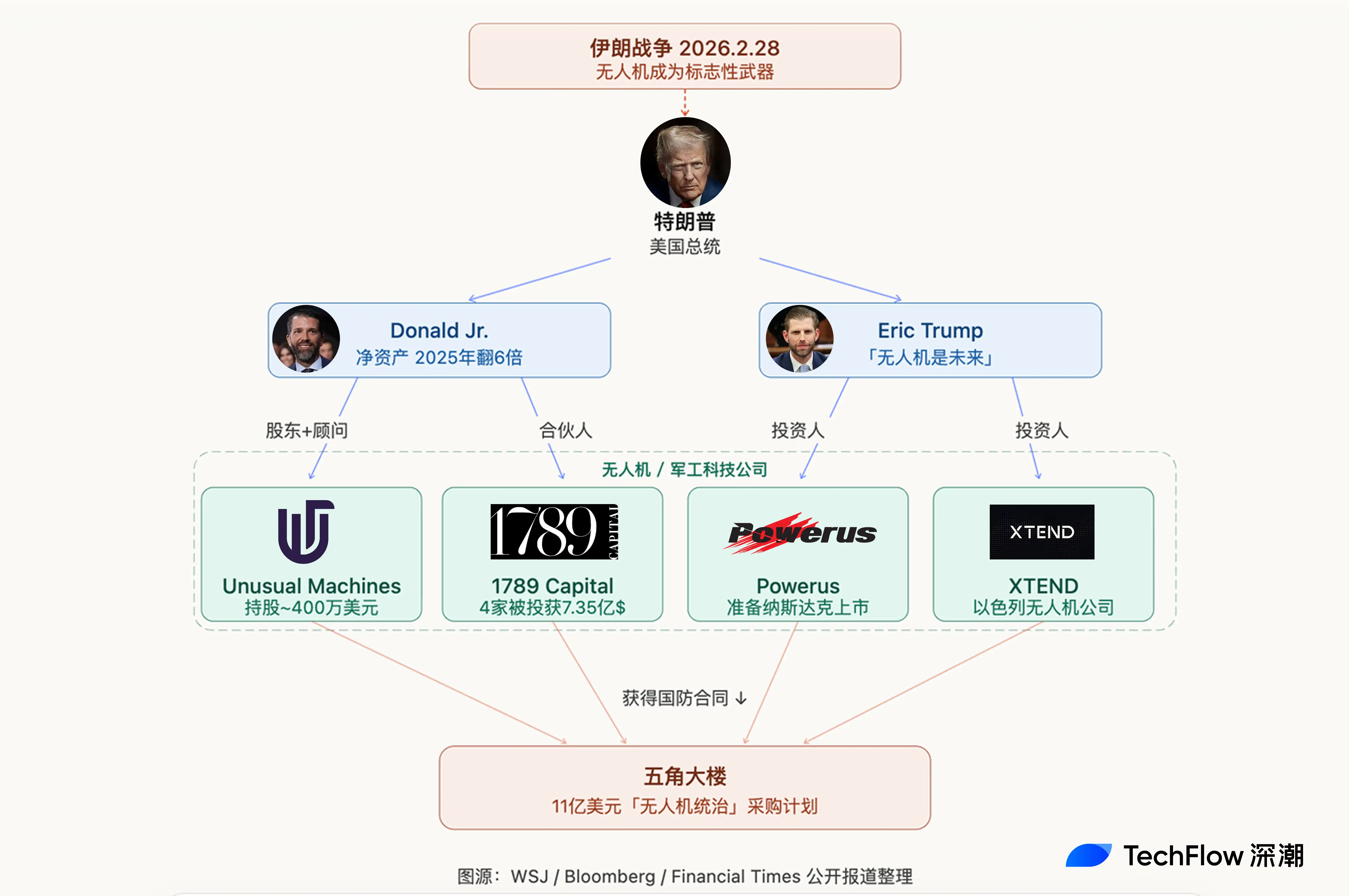 Donald Jr. is also a partner at venture capital firm 1789 Capital. According to Financial Times statistics, in 2025 alone, at least four portfolio companies of this VC received defense contracts from the Trump administration, totaling over $735 million.
