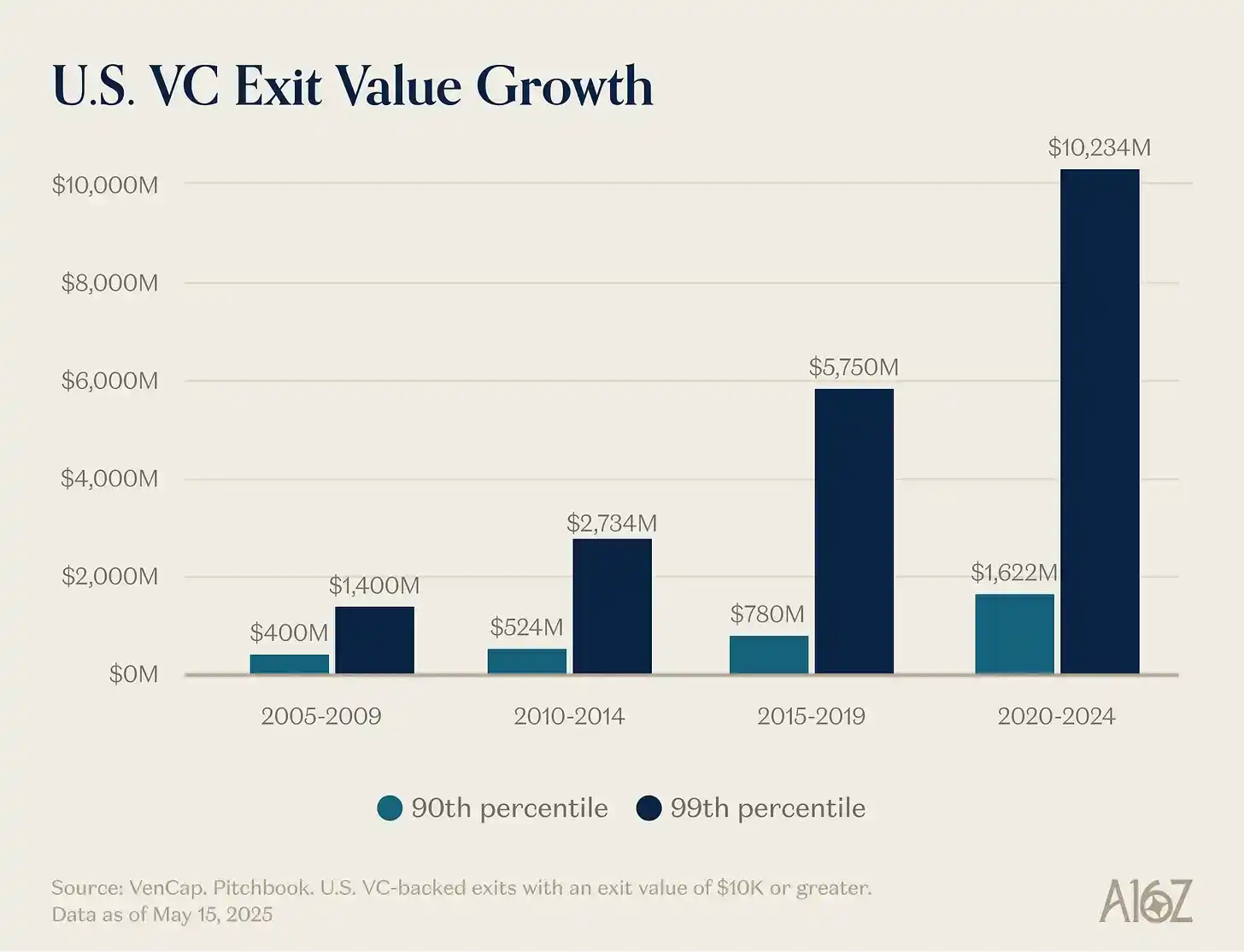 His first point—that the number of winners is fixed—is easily disproven. There used to be about 15 companies reaching $100 million in revenue per year; now there are about 150. Not only are there more winners than before, but the winners are also larger than before. Although entry prices are higher, the output is much larger. The ceiling for startup growth has risen from $1 billion to $10 billion, and now to $1 trillion or even higher. In the 2000s and early 2010s, YouTube and Instagram were considered massive acquisitions at $1 billion: such valuations were so rare then that we called companies valued at $1 billion or more "Unicorns." Now, we simply assume that OpenAI and SpaceX will become trillion-dollar companies, with several more to follow.