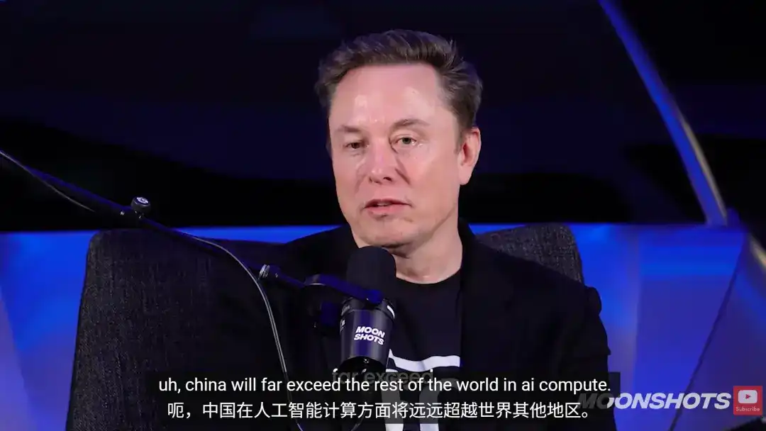 Regarding the current AI competition landscape, Musk asserted with great certainty: Based on current trends, China will far exceed the rest of the world in AI computing power.