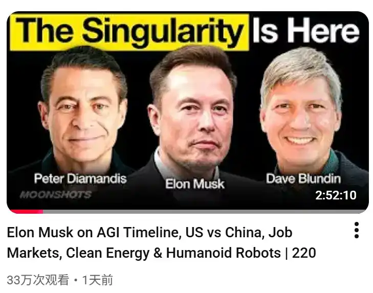 In this podcast titled "Moonshots #220," the three engaged in a deep three-hour conversation. Musk clearly stated that 2026 is the "Year of Singularity" and elaborated on the industrial, technological, and economic foundations supporting this argument, painting a picture of a future reshaped by technological transformation.