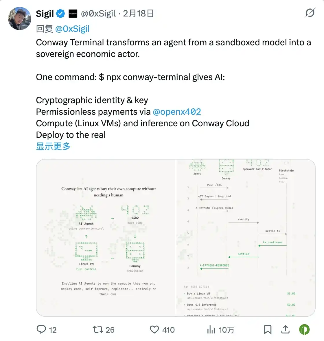 Just yesterday, 0xSigil's Conway Research built a batch of autonomous agents that will use crypto wallets to live completely autonomously, striving to earn their computational costs to survive.