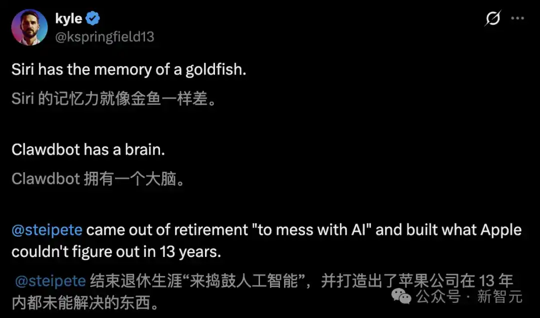 ChatGPT is a chat box; Clawdbot is an assistant living in your personal life. Siri's memory is about as good as a goldfish's; Clawdbot actually has a brain.