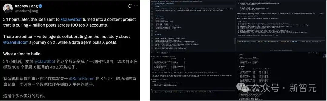 AI browser Arc developer Andrew Jiang tested it: 24 hours after giving Clawdbot the idea, it had completed scraping a content project involving 100 top X platform accounts, totaling 4 million tweets.