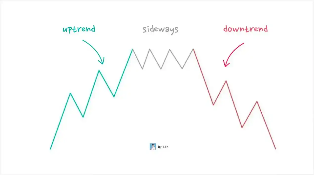 Most of the time, the market has no clear trend. Only a small portion of the time does a clear, strong trend emerge. The rest of the time, the market moves sideways.