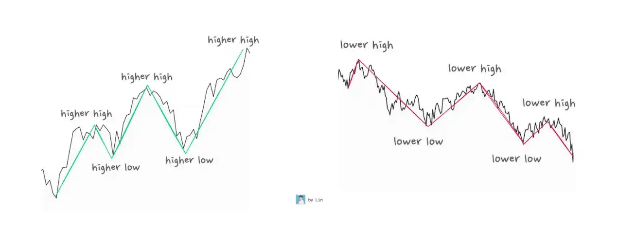 To identify these trends, you can also use simple tools like trend lines or moving averages to help determine the overall direction.