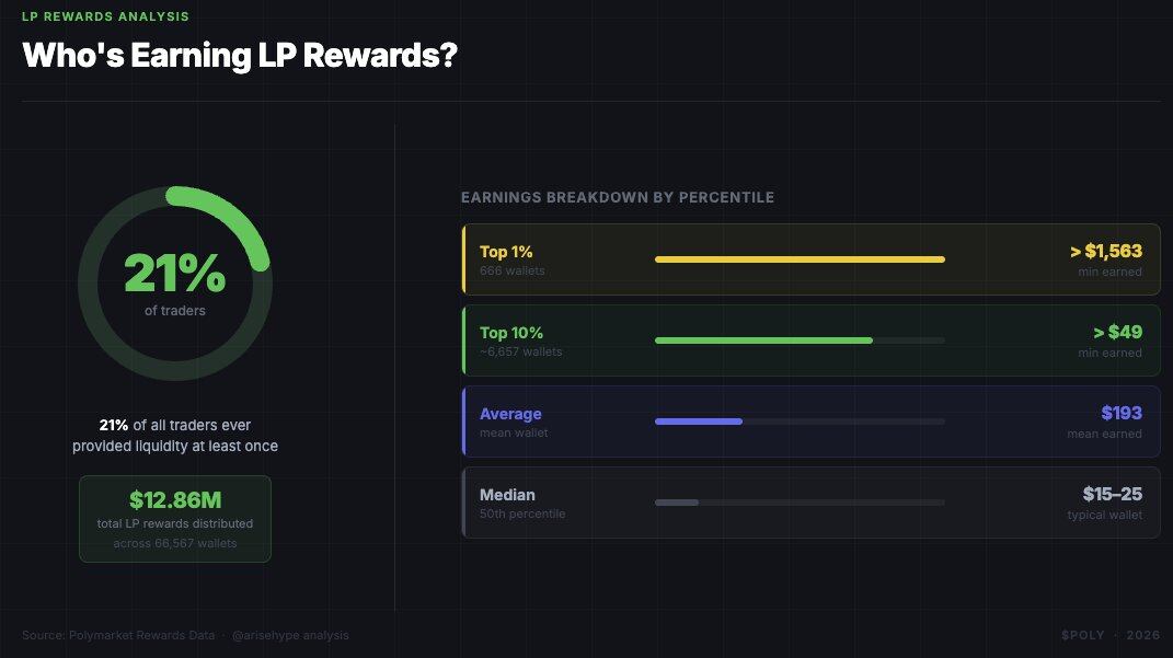 79% of traders have never received $1 in LP rewards. If LP weight accounts for 35% of the airdrop formula, the most capital-efficient behavior currently is to provide limit orders in high-volume markets and start accumulating on-chain verifiable proof of contribution.