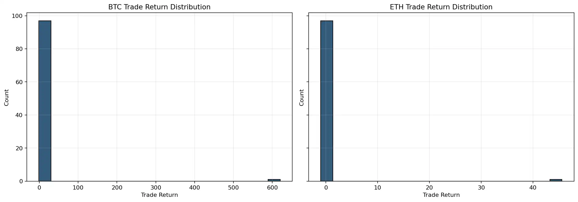 In other words, these conclusions are not based on a small sample or incomplete data, but on a complete historical review of BTC and ETH under the same set of rules.