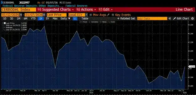 The Fed's balance sheet declined in 2025 due to quantitative tightening (QT). QT ended in December, and at that month's meeting, a new money-printing program called "Reserve Management Purchases" (RMP) was launched. I discussed this in depth in a previous article. The chart clearly shows the balance sheet bottomed in December. RMP injects at least $40 billion per month, and its size will increase as the funding needed to finance the US government grows.