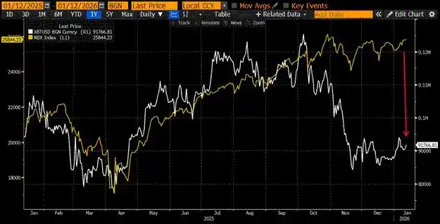 In the US, this analysis is new, but industrial policy is just as entrenched as in China, only marketed differently. Trump drank the AI "Kool-Aid," and "winning the AI race" became his economic platform. The US government has effectively nationalized any component deemed helpful to "winning." Through executive orders and government investment, Trump is blunting market signals, causing capital to flood into AI-related areas regardless of return. This is why the Nasdaq decoupled from Bitcoin and the decline in dollar liquidity in 2025.