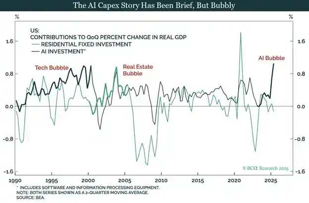 Bubble or not, increased spending to "win" AI is driving the US economy. Trump promised to make the economy run hot; he can't stop just because the return on this spending might be below the cost of capital a few years later.