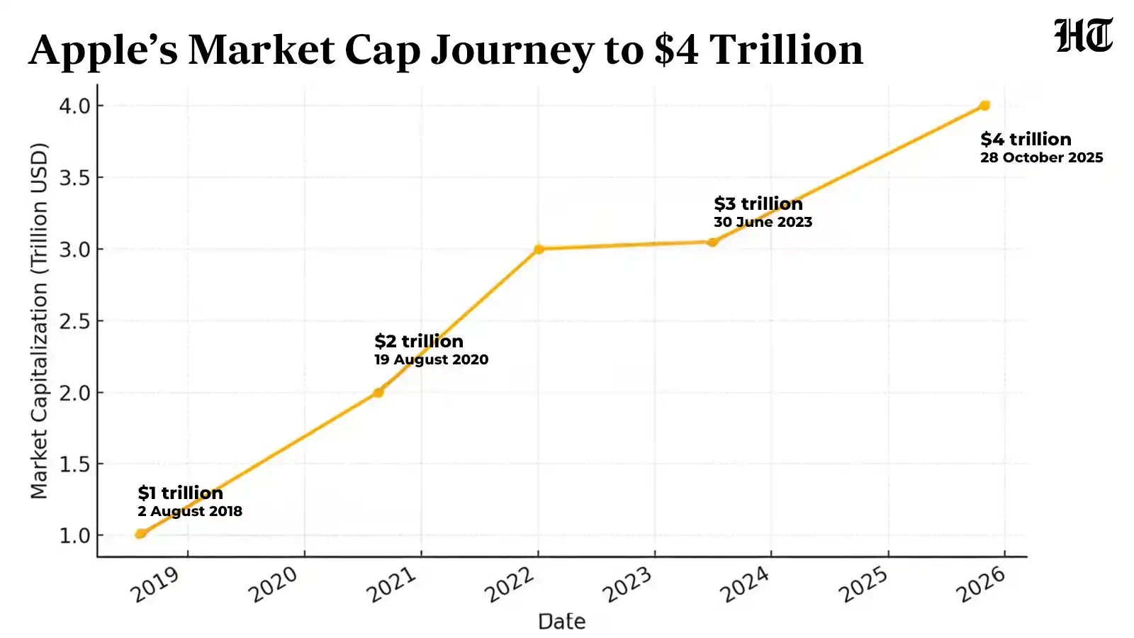 According to CNBC, when he took over the company from Steve Jobs in 2011, Apple's market capitalization was approximately $350 billion. Today, that figure is $4 trillion—an increase of over tenfold.