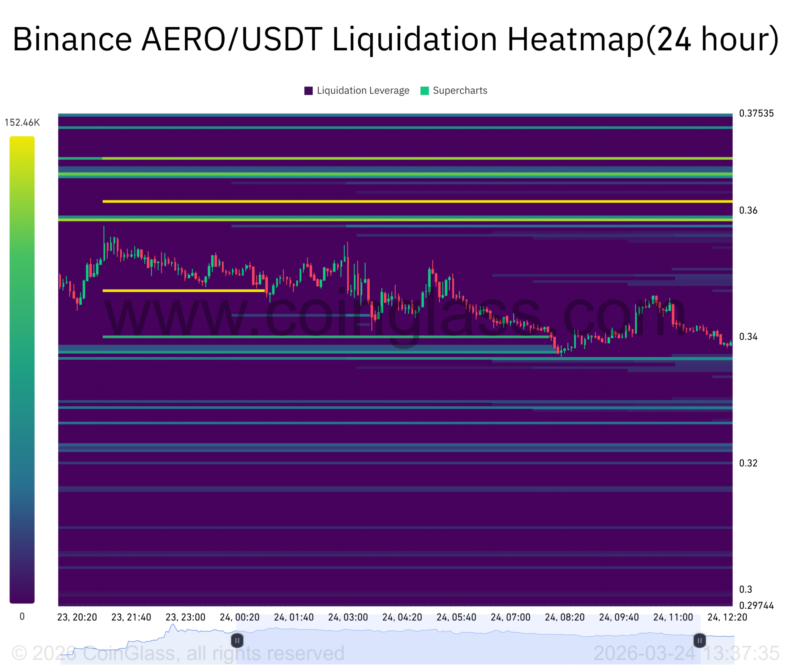 清算数据显示,密集的清算集群形成于当前价格上方,尤其是在0.36美元至0.375美元区域。