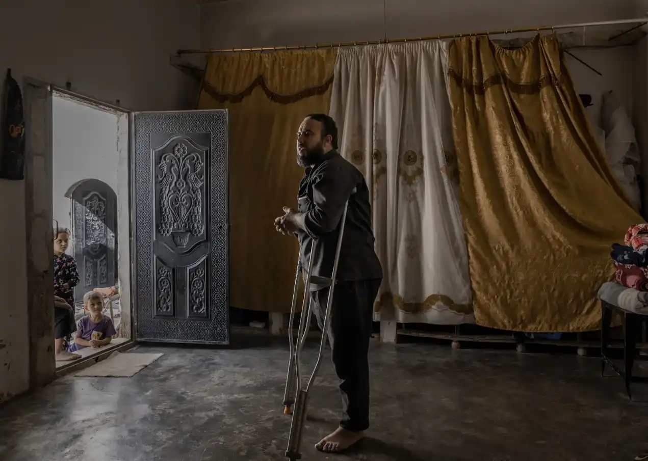 Abdul Moti Hammoud, a resident of Halfaya, lost a leg after accidentally triggering a landmine while driving a tractor. He is a beneficiary of the aid organization Mercy Corps.