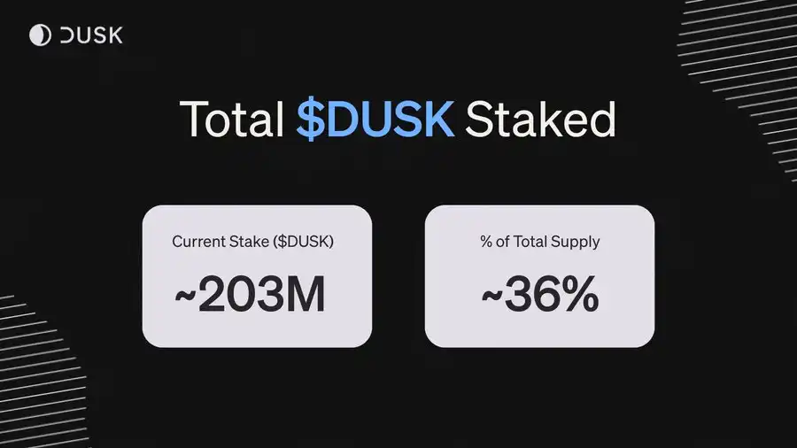 The latest data disclosed by the Dusk Foundation on December 29th shows that over 200 million DUSK is currently staked, accounting for 36% of the supply. This, to some extent, also reflects token holders' recognition of its long-term positioning.