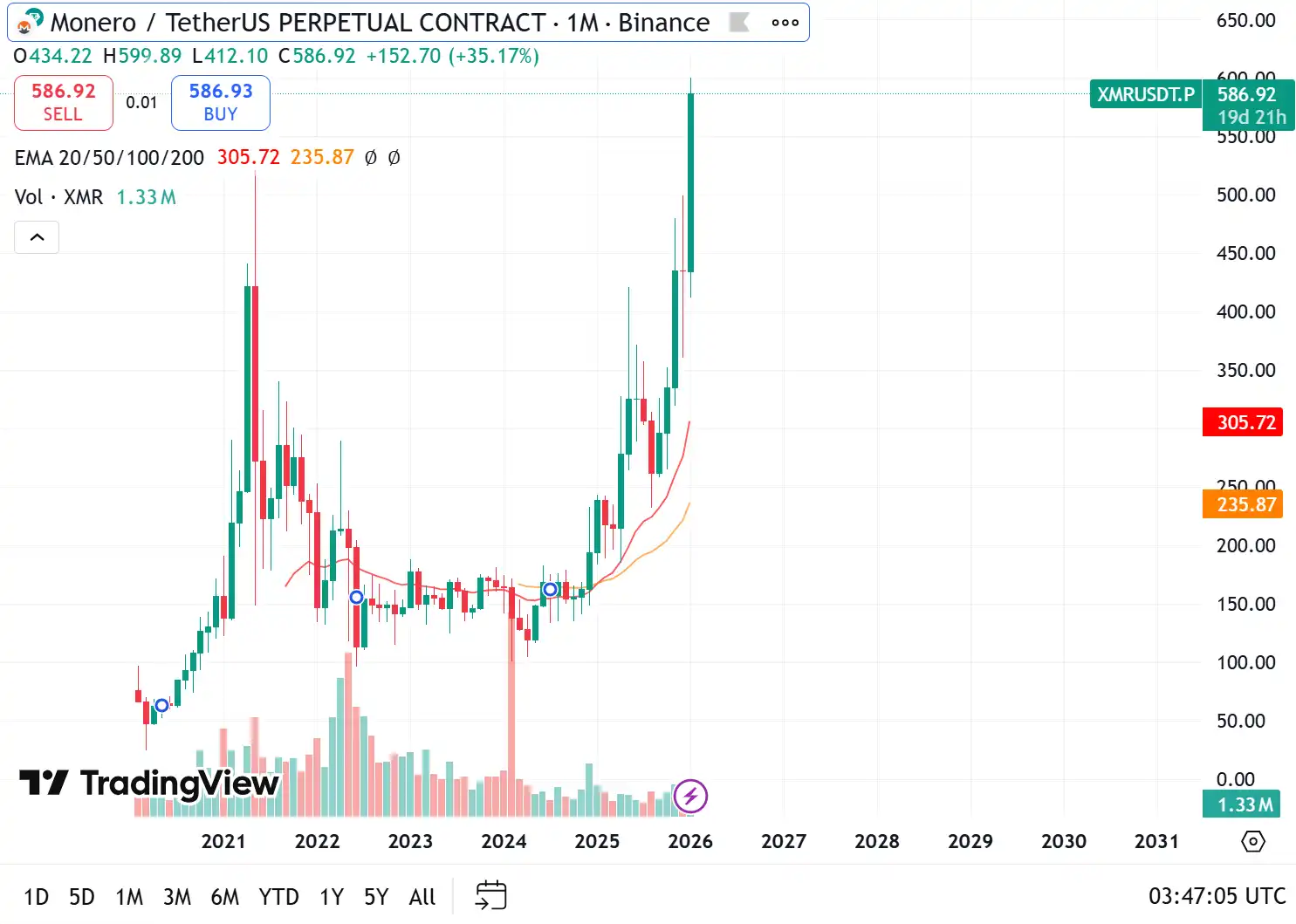 On January 13th, Monero (XMR) price broke through $650. Its rise since the beginning of 2024 has exceeded 500%. But more symbolic than the increase is that this is XMR's first effective breakthrough of the historical high from the 2017 bull cycle, after a gap of 8 years.