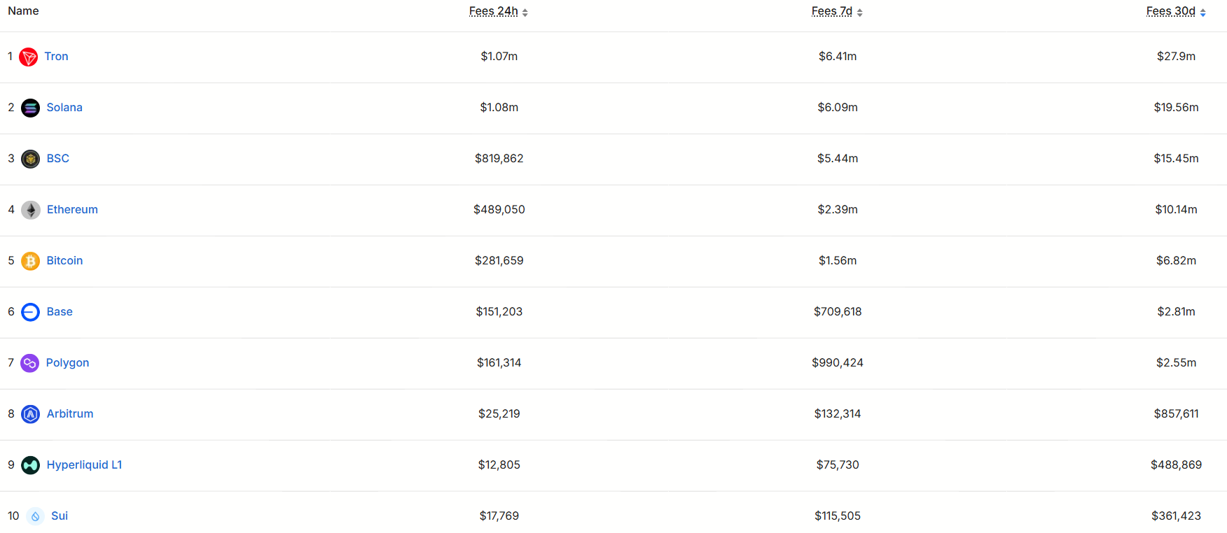 除了战略层面的布局,Polygon 的链上数据表现也很出色。根据 defillama.com 近 30 天公链收入数据,Polygon 位居第七,仍然在竞争激烈的公链赛道中保有一定韧性。