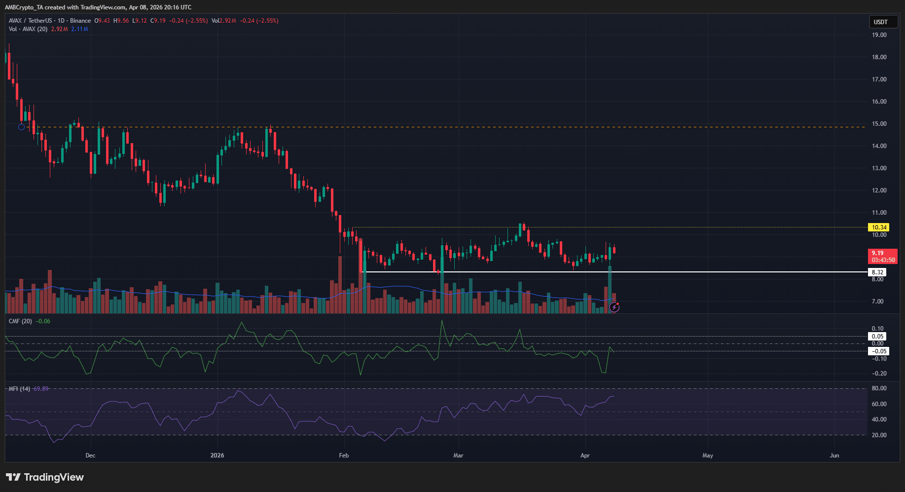 Avalanche [AVAX] rallied by 13.71% in just under 18 hours on Tuesday, 7 April. The move from $8.46 to $9.62 came alongside heavy spot volume. The announcement that the Chicago Mercantile Exchange (CME) Group would launch Futures tied to Avalanche in May likely buoyed prices.