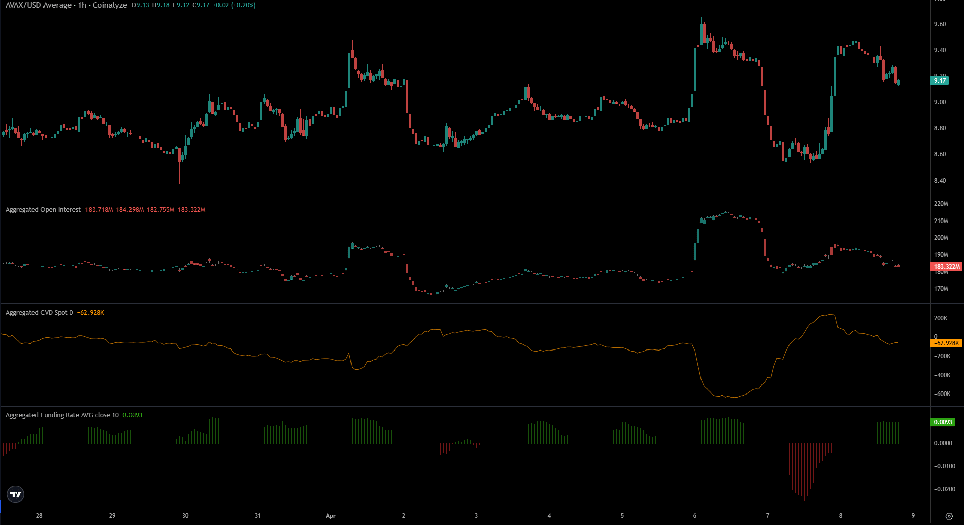 The market-wide bounce also helped AVAX bulls. And yet, as Coinalyze data showed, the Open Interest hike was timid compared to the 13% price bounce. The OI trends showed that the first rally to the $9.6 resistance saw a much steeper OI rise compared to the second one since Monday.