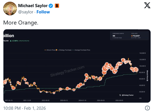 Despite the gloomy market sentiment, MicroStrategy Executive Chairman Michael Saylor still shared an image with the words "More Orange" on social media platform X on Sunday, hinting at continued accumulation. The company announced a 25 basis point increase in the dividend for its Series A Perpetual Extension Preferred Shares (STRC) to 11.25%, aiming to attract capital with high financing costs to sustain its Bitcoin acquisition strategy. However, analysts point out that if the price remains stagnant or falls below its cost basis, the high dividend payments could trigger a serious cash flow squeeze.