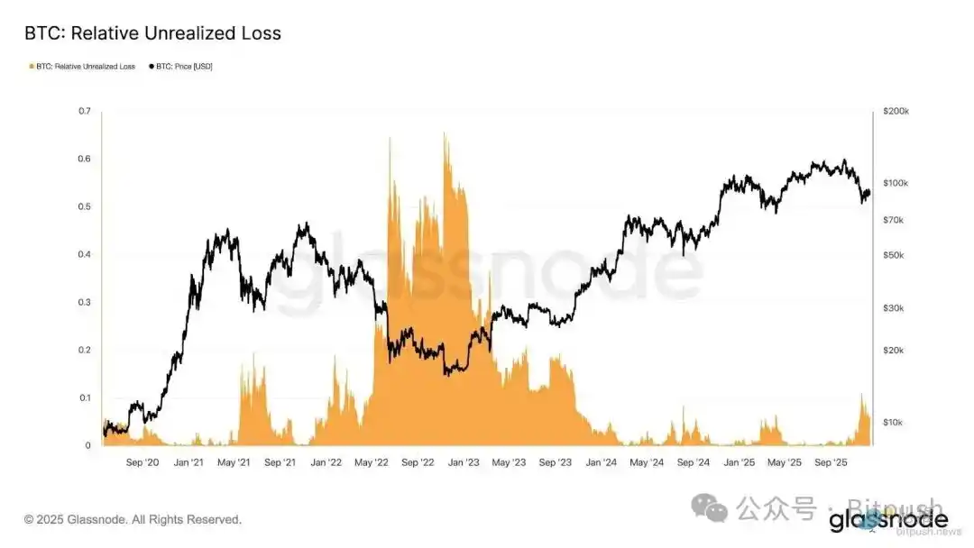 Glassnode's research points out that Bitcoin's current consolidation range between $80,000 and $90,000 has put pressure on the market, with intensity comparable to the end of January 2022. The market's relative unrealized loss has approached 10% of市值. Analysts further explain that such market dynamics reflect a state of "liquidity-constrained, sensitive to macro shocks," but it has not yet reached the level of atypical bear market彻底抛售 (panic selling).