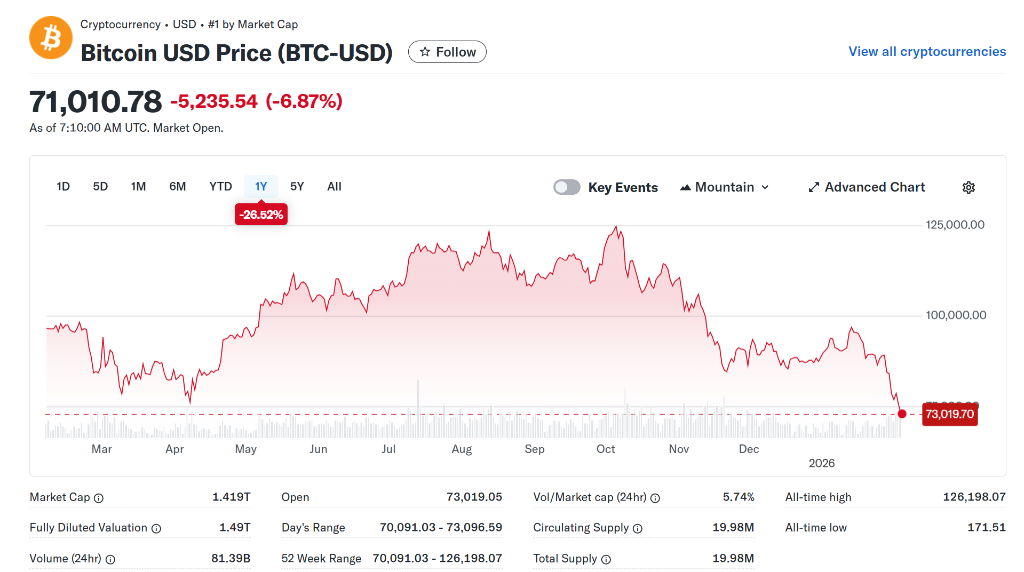 比特币正在经历从纯粹投机资产向机构化资产的痛苦转型。这一全球最大加密货币2月3日跌至约73000美元,较去年10月约125000美元的峰值下跌超40%。标志着所谓"小飞侠效应"(Tinkerbell Effect)阶段的终结——即仅靠信仰支撑的投机热潮正在退却。