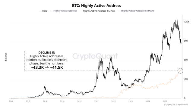 However, the platform’s analysis of the current market state is mainly centered on the Bitcoin Highly Active Address metric. This key metric points to a slowdown in the BTC Network. A look at the chart reveals a steady drop in the highly active BTC addresses, reinforcing lower speculative activity and suggesting that higher volatility lies ahead.