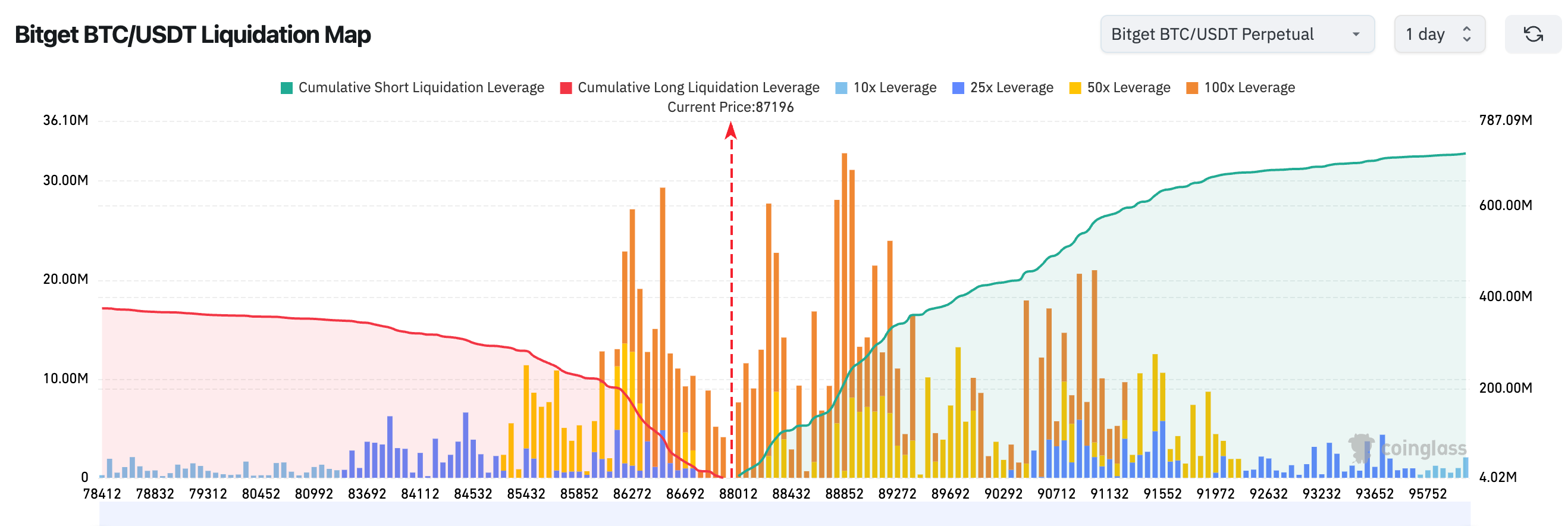 3. Bản đồ thanh lý Bitget BTC/USDT cho thấy: Giá hiện tại khoảng 87.200, đang ở khu vực giao nhau dày đặc của thanh lý mua và bán. Vùng từ 88.000–89.000 phía trên tích lũy nhiều lệnh bán ký quỹ cao, một khi vượt qua dễ kích hoạt việc mua lại liên hoàn từ phe bán. Vùng từ 86.000–87.000 phía dưới có nhiều lệnh mua tập trung, nếu giảm xuống dưới sẽ kích hoạt cắt lỗ tập trung. Thị trường ngắn hạn thể hiện cấu trúc biến động cao với "rủi ro cao ở cả hai đầu".
