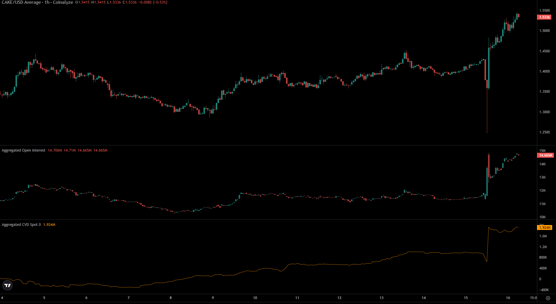In the past 24 hours, Open Interest behind CAKE perpetual contracts has increased by 28%.