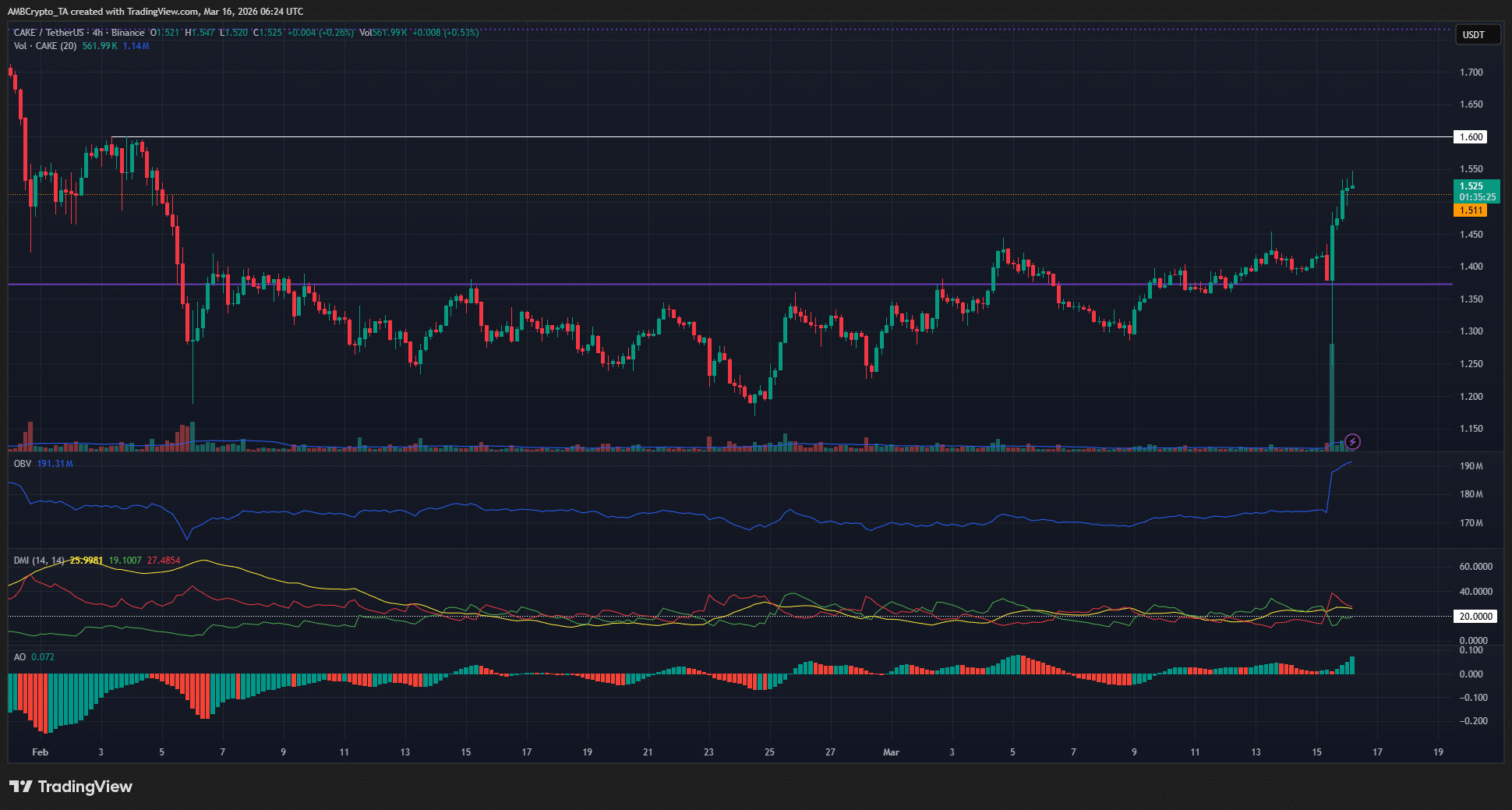 - PancakeSwap was in a long-term downtrend, but its recovery from $1.3 to $1.5 showed strong short-term bullish momentum.