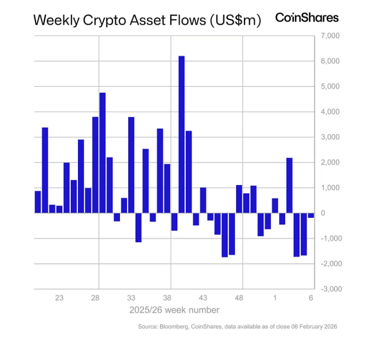 Crypto investment products saw another week of net withdrawals, but the rush out the door slowed sharply as prices found firmer footing. Trading activity stayed heavy, and a handful of altcoins drew fresh interest even while Bitcoin-focused funds lost ground.