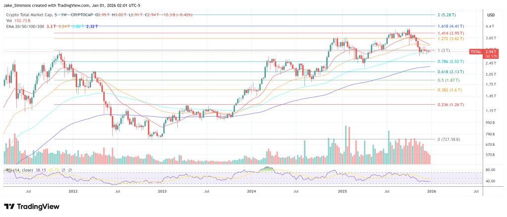 At press time, the total crypto market cap stood at $2.94 trillion.