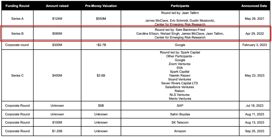 In April 2022 (the official announcement date, though the transaction was actually completed in 2021), FTX made its most significant investment in the AI field—leading a $580 million Series B funding round for AI startup Anthropic with a $500 million investment. FTX initially held a 13.56% equity stake, which was later diluted to 7.84% as Anthropic completed multiple rounds of funding.