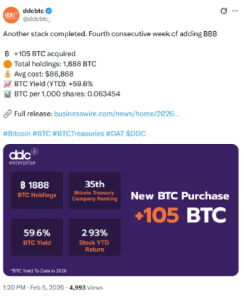 DDC extends its Bitcoin accumulation streak. That move marks yet another chapter in the corporate race to secure hard assets on balance sheets.