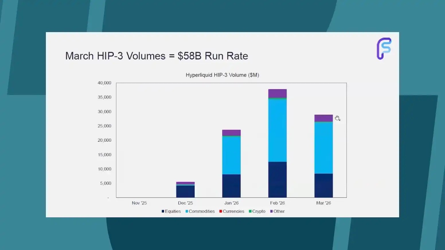 I also shared a chart: in the first 15 days of March, the trading volume of the HIP-3 market reached $28 billion, largely thanks to recent cross-asset price volatility and global macroeconomic turmoil. We noticed many investors traded oil contracts over the weekend, and before that, precious metals were a hot trading topic.