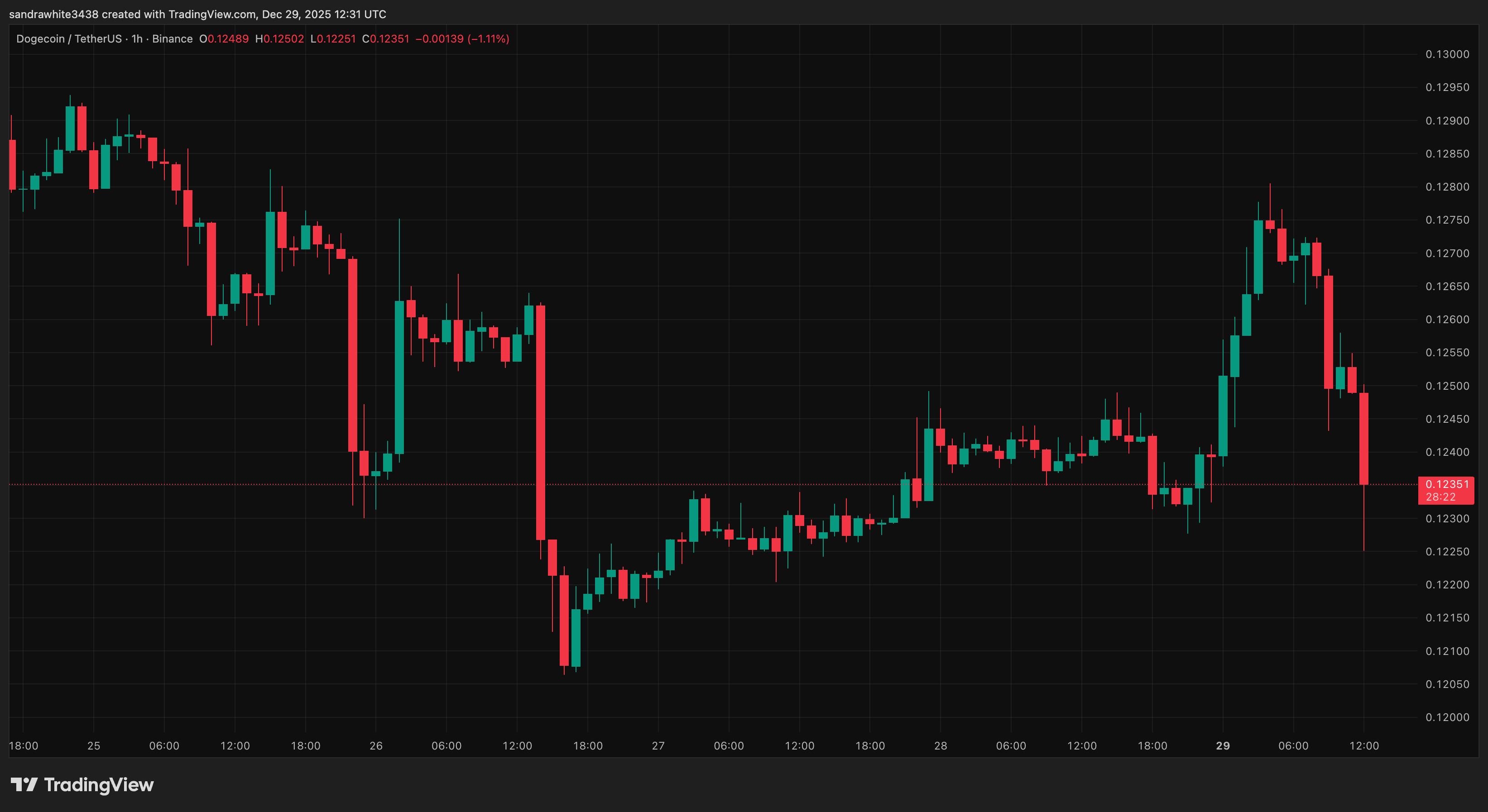 DOGE pushes down again | Source: DOGEUSDT on Tradingview.com