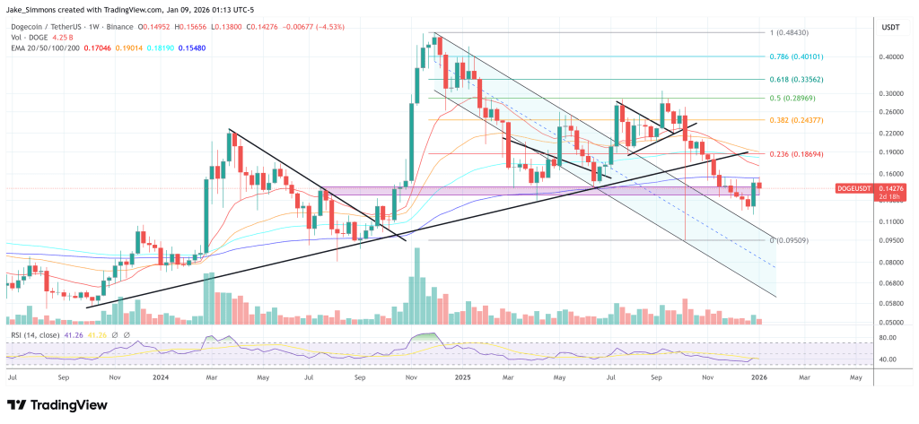 At press time, DOGE traded at $0.14276.