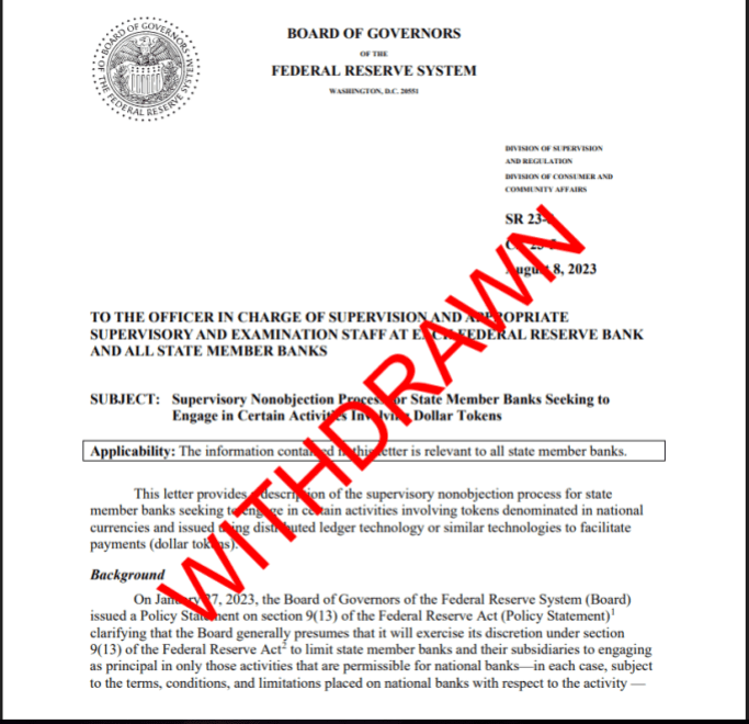 🚨🚨🚨WOWZERS–the Fed rescinded guidance it enacted in Jan 2023 simultaneously with the @custodiabank denials + the Biden White House anti-crypto statement. Thank you, VCS Bowman & Gov Waller!🙏 The Fed broke the law by citing this very guidance in the Custodia denial, even tho...