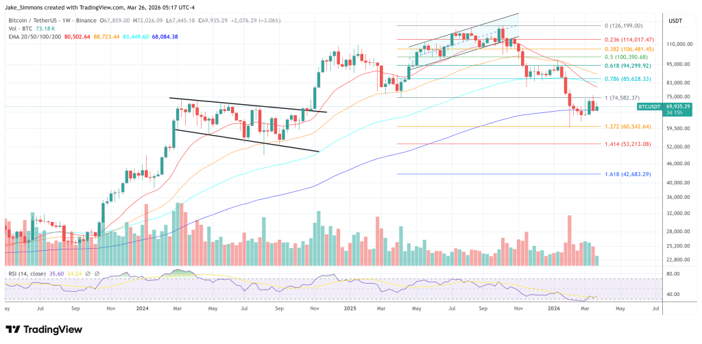 At press time; BTC traded at $69,935.